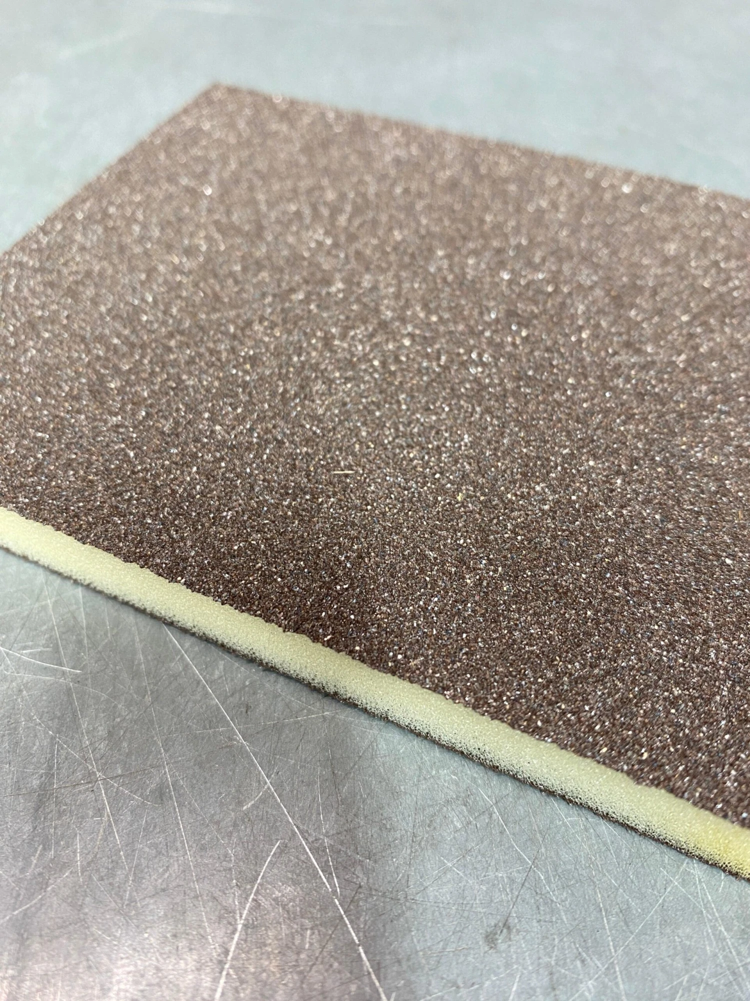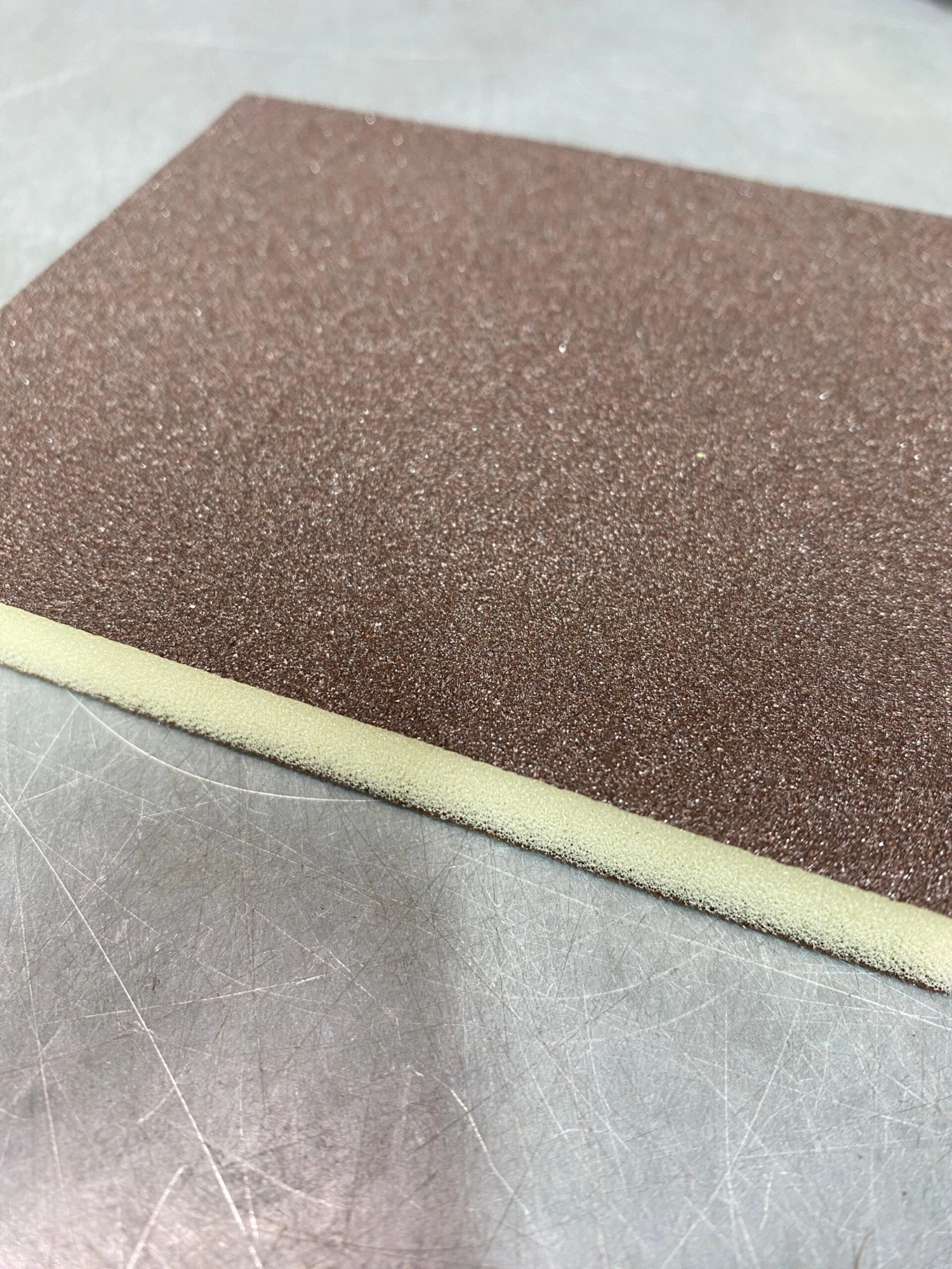 Easy to hold with great flexibility for straight or curved edges. Can be used wet or dry. The inside is a soft foam so you can easily wrap this pad around curved surfaces like railings.