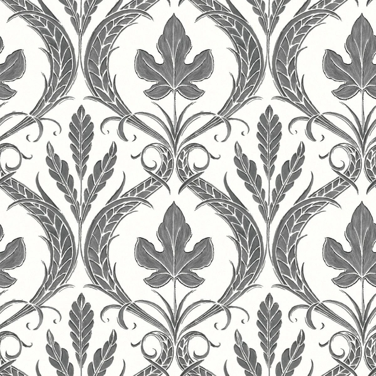 The sugar maple leaf is the lodge-inspired vintage symbol at the heart of modern pattern Adirondack Damask’s ovals and ornate scrolls.