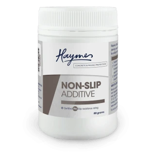 Haymes Paint Non-Slip additive provides slip resistance for concrete and paving areas that can become slippery when wet. Non-Slip additive can be added to any of the Haymes Paint Concrete & Paving Protection product topcoats, delivering a minimum certified P4 slip rating when applied at recommended mix rate.