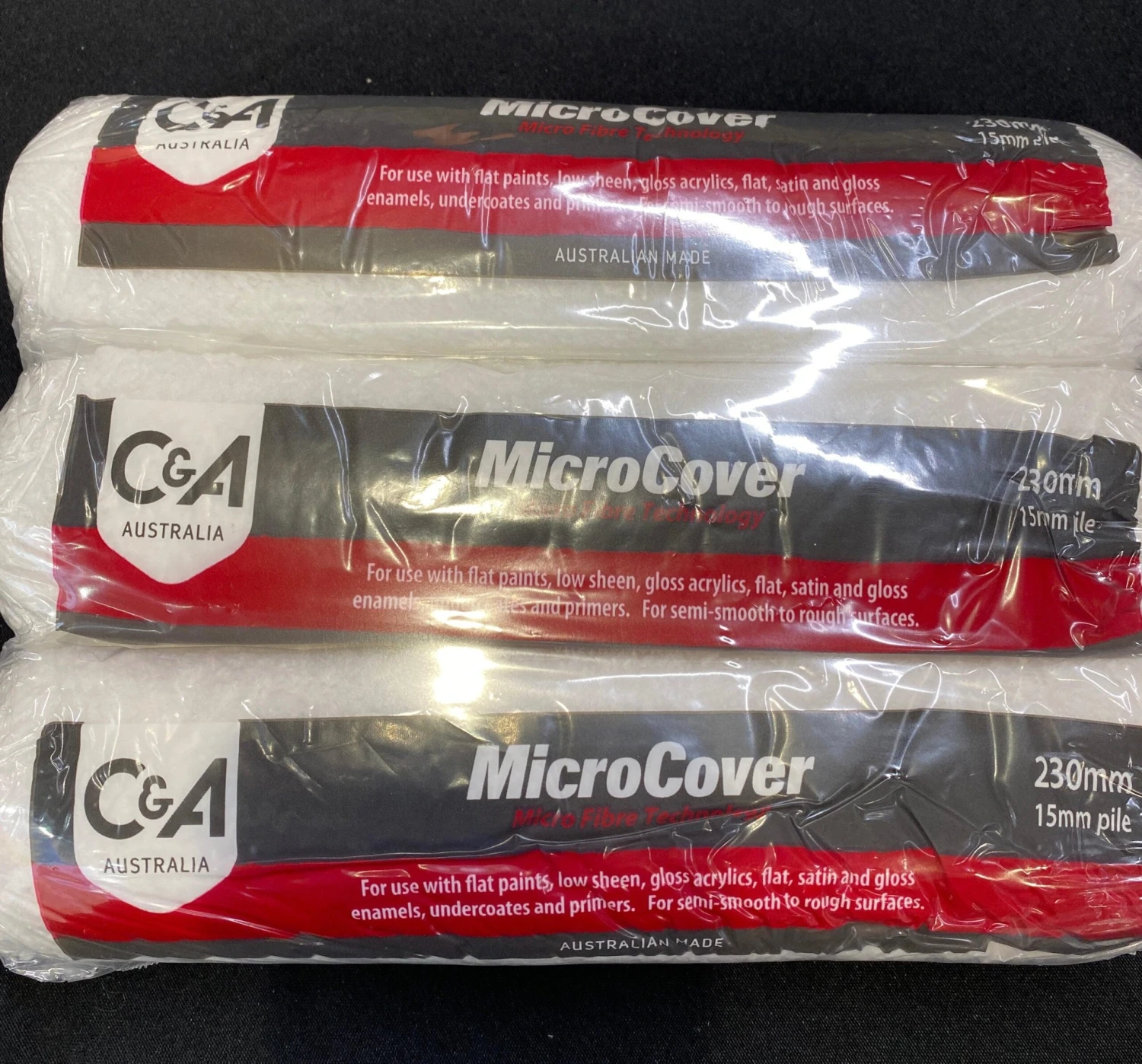 The 15mm pile is perfect for use with ceiling paints and low sheen wall paints on gyprock and cement rendered surfaces. Use a quality paint like Haymes Ceiling White or Haymes Low Sheen Acrylic paints and you will get less splatter and a professional looking finish every time!