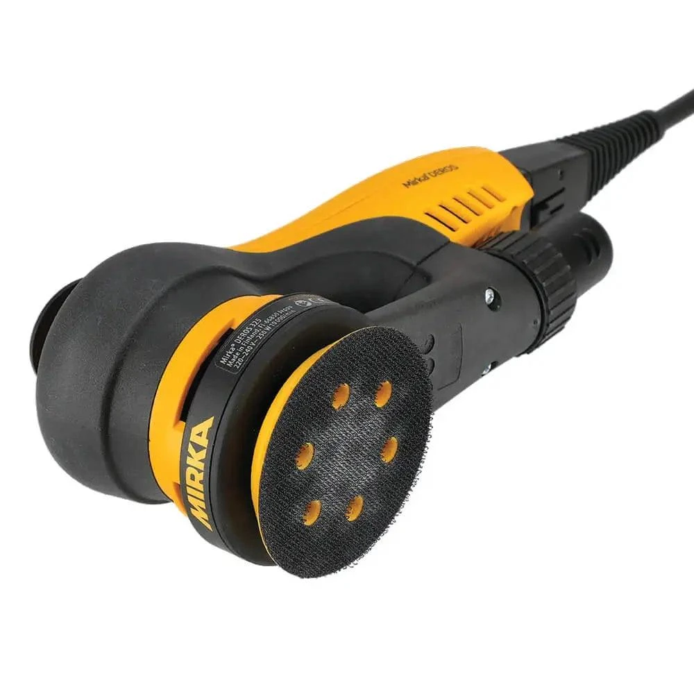 The Mirka Deros 325CV 77mm Random Orbital Sander – 2.5mm orbit is a unique 77mm direct electric random orbital sander developed especially for smaller sanding operations; small repairs, headlight restoration, bumper sanding, hard-to-reach areas and kitchen refurbishing.