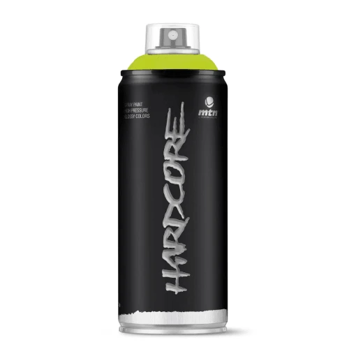 Synthetic resin enamel solvent paint. High pressure. Touch dry 10 min. The Hardcore range is a 400ml Synthetic solvent based enamel gloss spray paint. which is fast-drying with good hardening and durable characteristics. This tool is excellent in the graffiti community and is also a valid product for DIY, industrial and commercial uses where the properties of a high quality paint are required. Combine, test, and win. MTN Hardcore paint is compatible with all the MTN products. It dries in a few minutes and after 24-48 hours, depending on the number of coats applied and the atmospheric conditions, the film hardens completely, thus increasing its resistance.