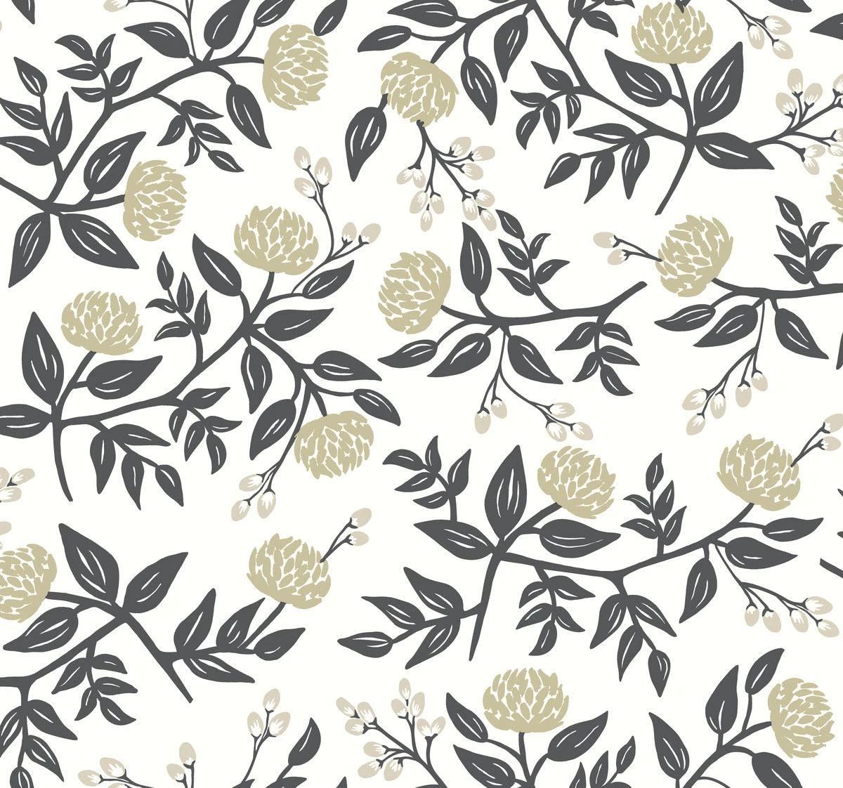 Rifle Paper Co.’s Peonies print features large blooms and delicate buds tossed on colored backgrounds for a casual, optimistic feel.